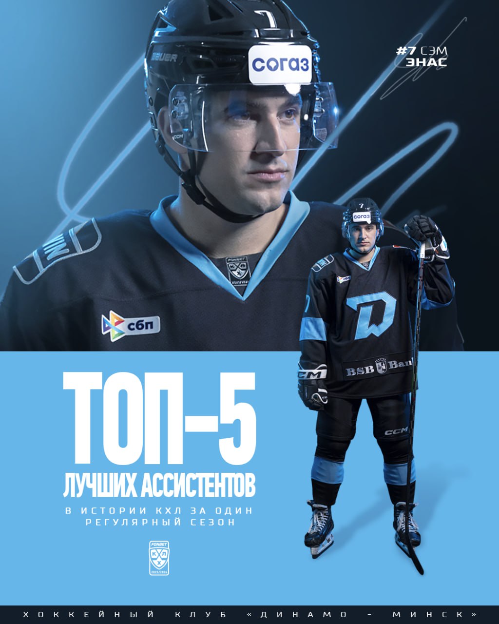 Более того, передача в матче с московским «Динамо» стала 52-й для динамовца в этом сезоне и единолично вывела его в ТОП-5 ассистентов за одну регулярку в истории лиги.