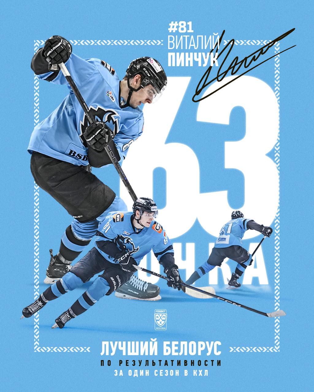 Виталий Пинчук («Динамо-Минск») — 63 (30+33) очка в 62 матчах (сезон-2025/26)