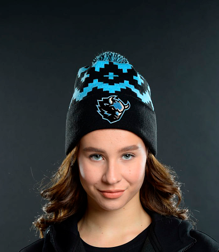 Шапка трикотажная черная Орнамент "Зубр" (4905)